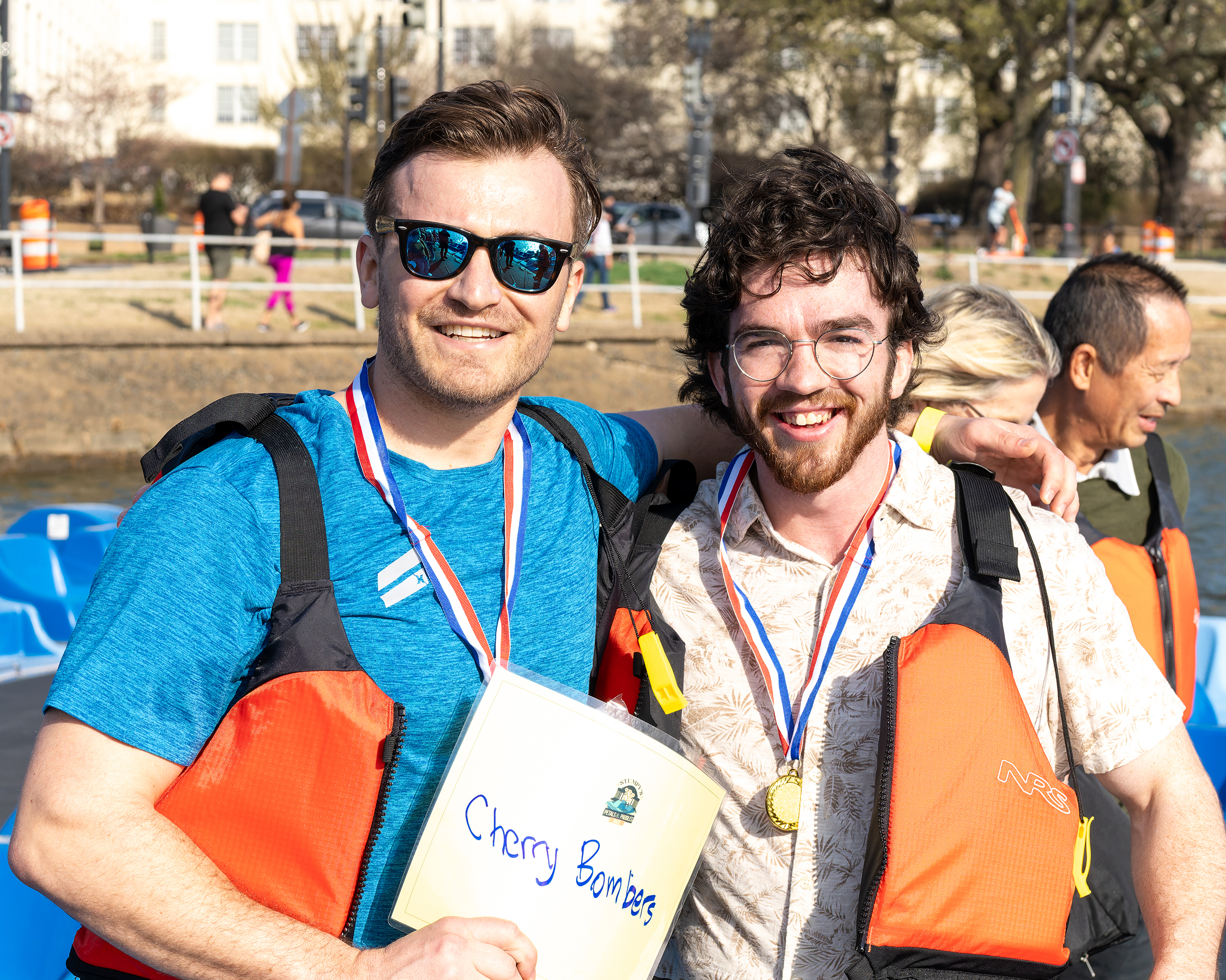 Overall Winners: The overall champions, siblings Nofar and Aitan Erlichman of Team Jack and Jill, clinched victory in the sixth and final heat, just before storms cut the evening short. Aitan, a college student from Orlando visiting his sister in DC, told 7News, “We warmed up, locked in, and went for it—Nofar kept joking about the cherry trees, but I was like, ‘Focus!’” Their prize? A 2025 Boating in DC Family Season Pass, perfect for more Tidal Basin adventures.
